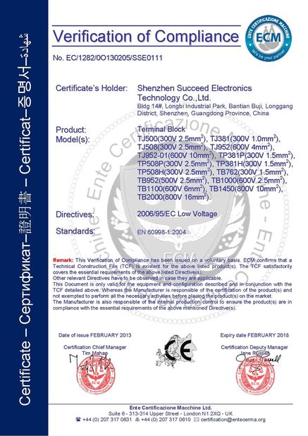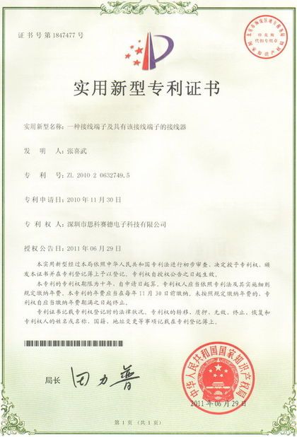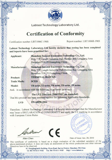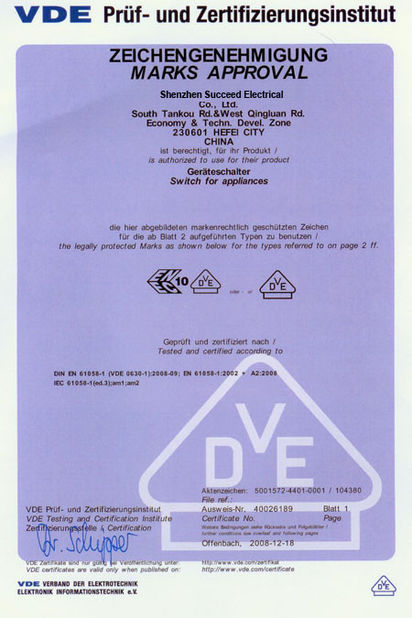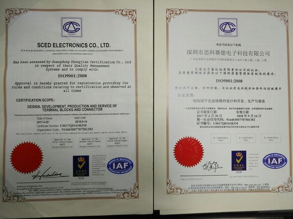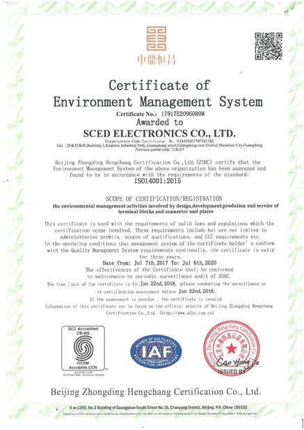 एससीईडी ने आईएसओ9001, आईएसओ14001 प्रबंधन प्रणाली प्रमाणीकरण प्रदान किया है, आरओएचएस, आरईएचएच मानक का अनुपालन किया है, और अनुमोदित यूएल、सीयूएल、सीयूएलस、सीई、वीडीई、सीक्यूसी प्रमाणपत्र प्राप्त किए हैं।